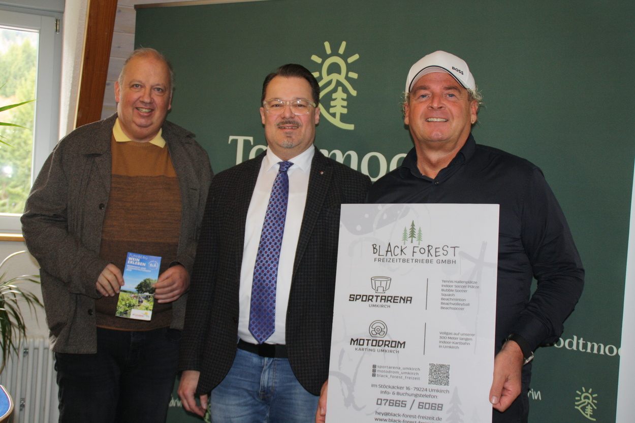 Eine bessere Auslastung der Wehratalhalle, auch mit großen Veranstaltungen, sowie eine gute Zusammenarbeit mit örtlichen Vereinen sind die wichtigsten Ziele, welche sich der neue Generalpächter derHalle, die Black Forest Freizeitbetriebe in Umkirch, gesteckt hat. Bei einem Pressegespräch erläuterten Hartwig Bächle und Matthias Reinbold von den Freizeitbetrieben Details zum geplanten Konzept. Die Räumlichkeiten können von örtlichen Vereinen wie gewohnt weiter genutzt werden; die Anmeldung erfolgt über die Gemeindeverwaltung. Hartwig Bächle sagt: „Wir möchten gerne miteinander und nicht gegeneinander arbeiten“. Die Firma möchte auch gute Kontakte zum hiesigen Gewerbe, wie etwa Metzger und Bäcker, pflegen, und für ein Catering Produkte vor Ort einkaufen. Matthias Reinbold erklärt, dass sich die Halle für Hochzeiten, Firmenfeiern und Tagungen anbietet. Es soll ein Konzept erstellt werden, um etwa mit Hotels durch Übernachtungen Synergieeffekte zu schaffen. Bürgermeister Marcel Schneider sagt: „Wir müssen wieder professionelle Veranstaltungen in die Halle bekommen. Dazu braucht es Know How und Erfahrung. Eine gute Auslastung und neuer Schwung erhöhen die Strahlkraft für Todtmoos“.