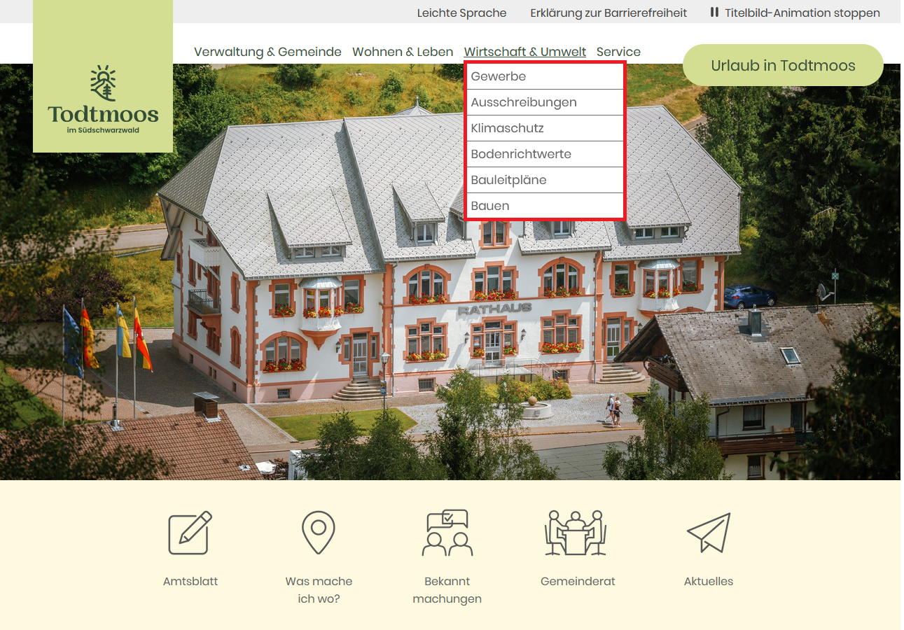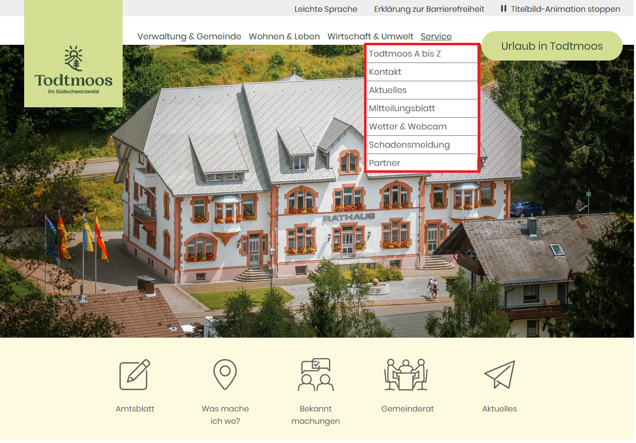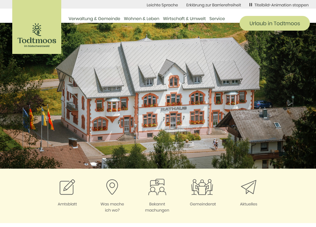 Das ist die Seite der Gemeinde Todtmoos.Die Seite wird auch Web · Seite genannt.
