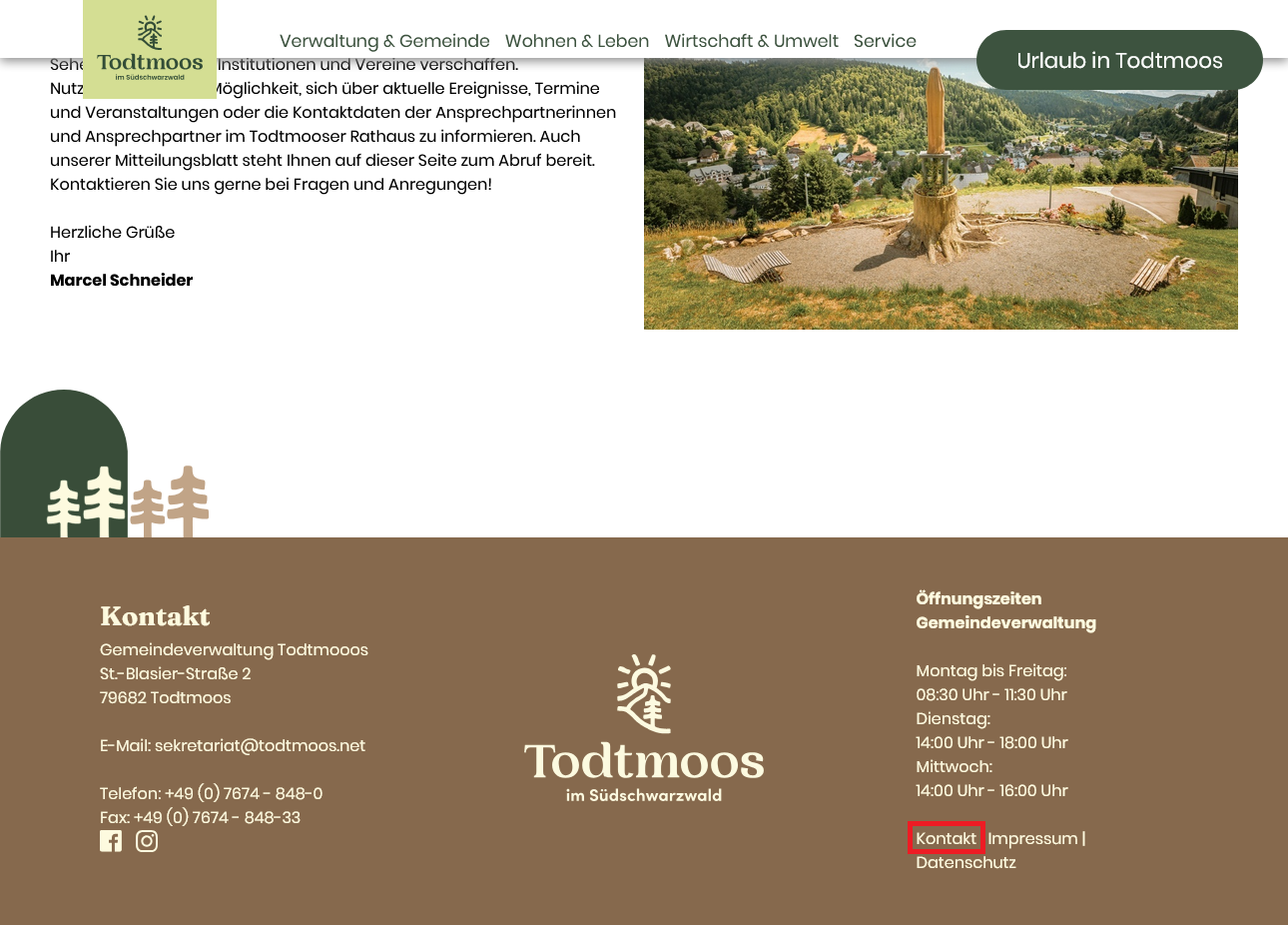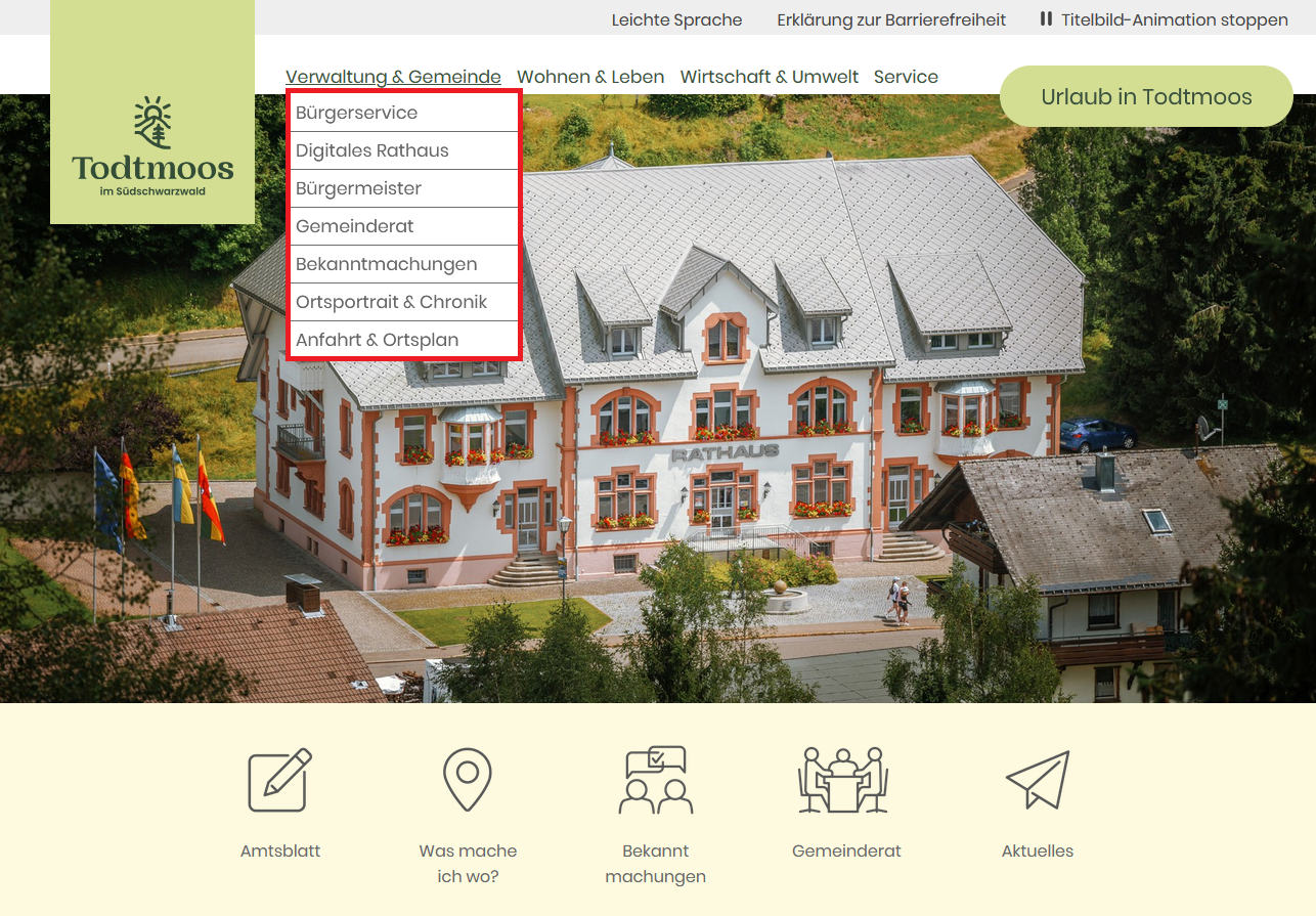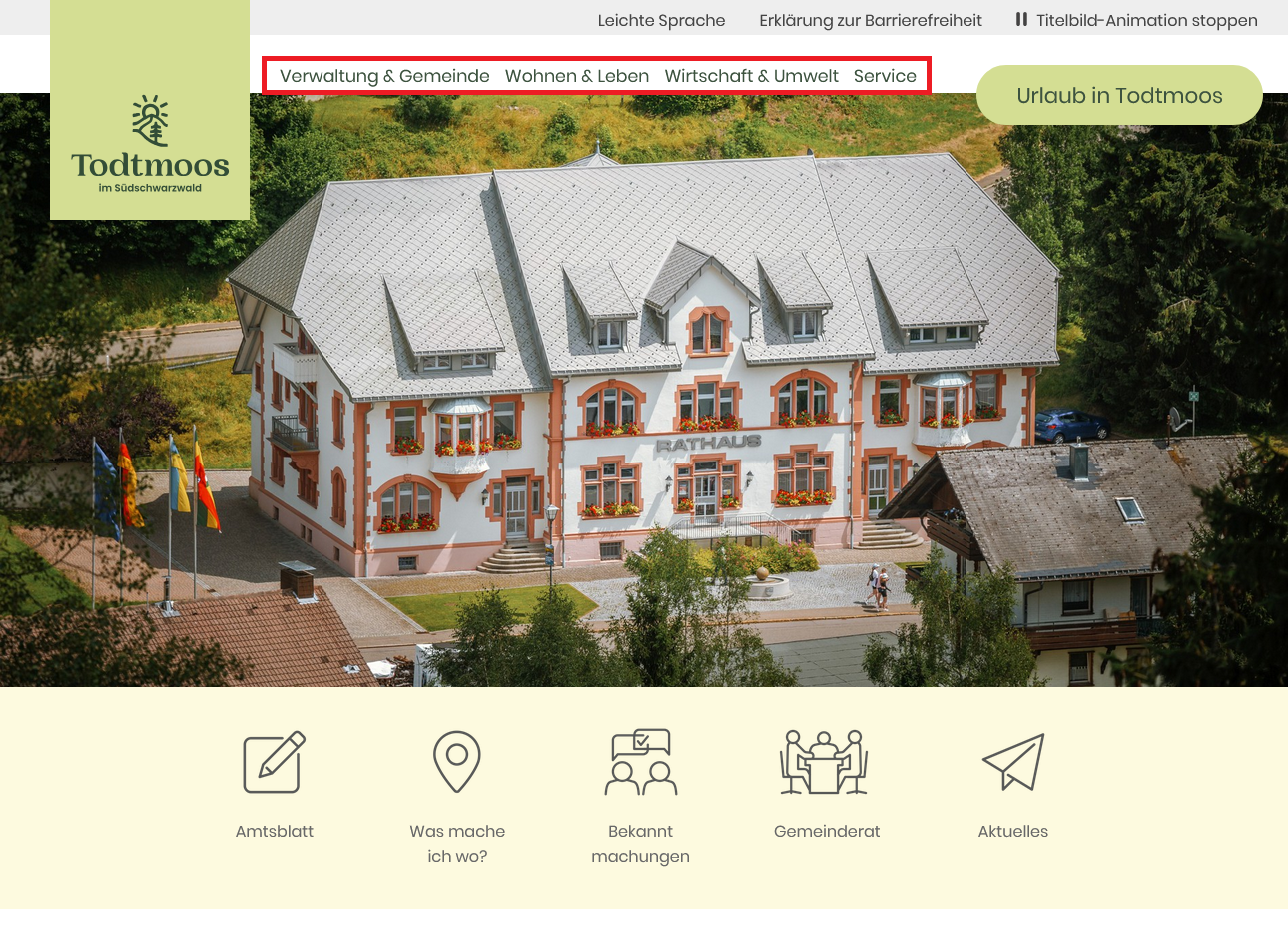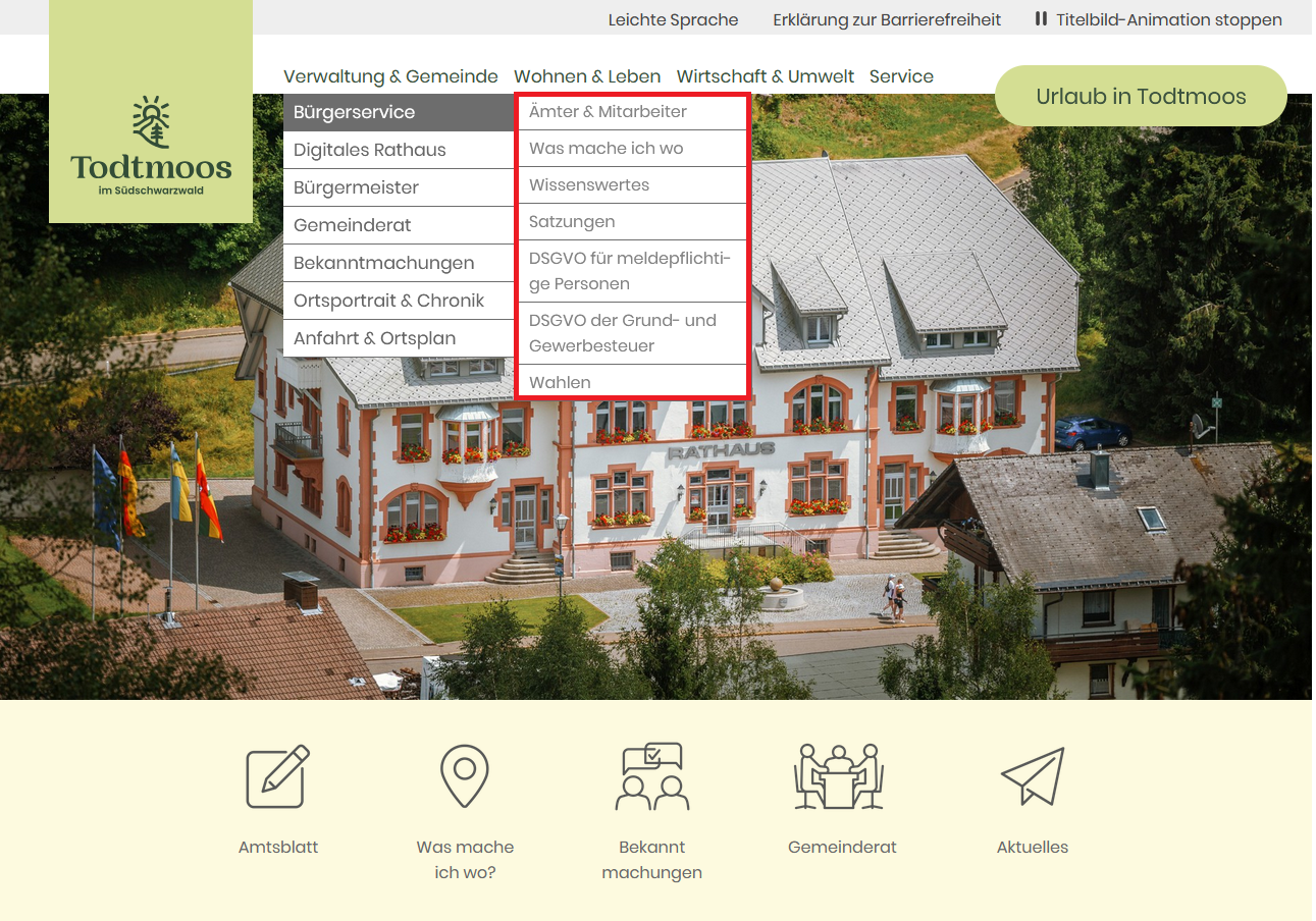 Das ist die Seite der Gemeinde Todtmoos.Die Seite wird auch Web · Seite genannt.